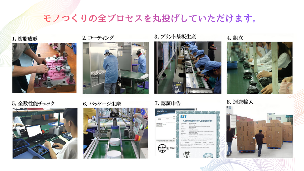 弊社は設計から量産・輸送まで一貫したフルサプライチェーン体制を整え、小ロットでも製品化を実現します。