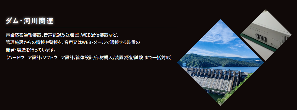 弊社では、ダム・河川の運用要件に適合した音声応答通報装置を提供し、地域防災の強化に寄与しています。